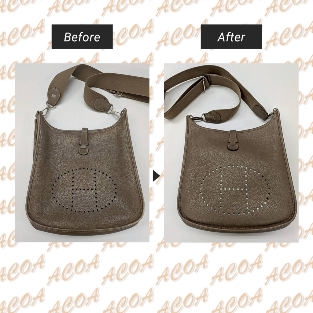 2025.12.14 バッグの染め直し、レザー製品の染め直し エルメス エヴリンの色染加工 エルメス エヴリンの色染加工。全体のトーンを整え、ムラのない上品な発色に仕上げています。修理やメンテナンスのご相談はお気軽にお問い合わせください。 Tweet Share